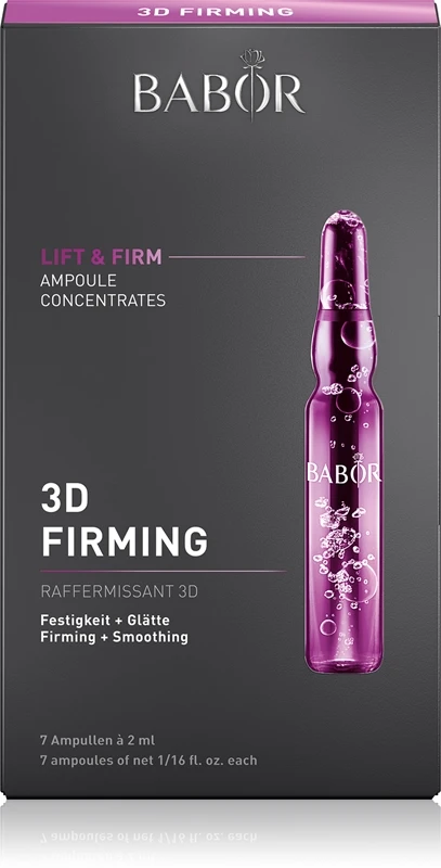Le sérum facial BABOR Ampoule Concentrates 3D Firming est un produit à teneur élevée en substances actives. Il constitue donc un soin de luxe pour votre visage.