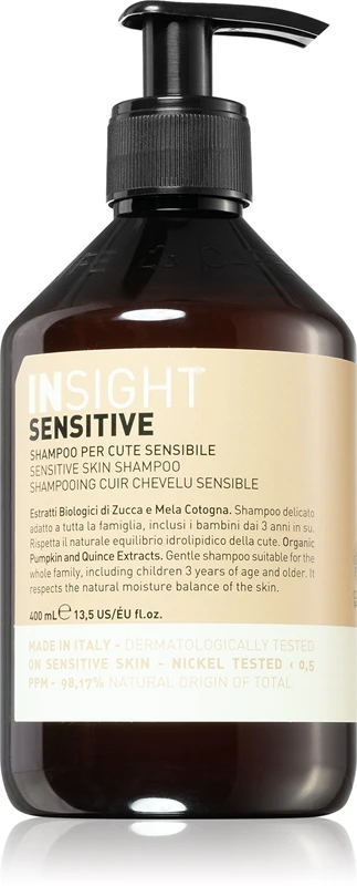 Saviez-vous que le lavage des cheveux n’est pas seulement une question de cheveux ? Le shampoing pour cuir chevelu sensible et irrité INSIGHT Sensitive prend en compte le cuir chevelu et respecte son microbiome. Quelle que soit sa sensibilité, il l’apaise parfaitement et lutte contre les irritations. Il convient à tous, à toute la famille, et prendra soin de vos cheveux en les nourrissant et en les assainissant.