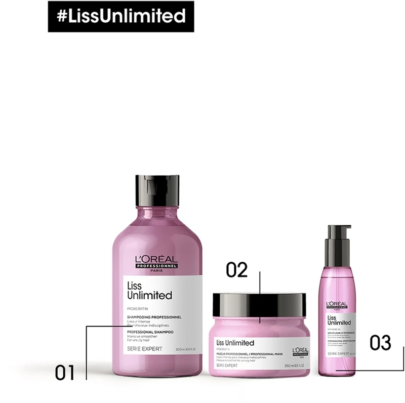 Vous passez du temps devant votre coiffeuse pour avoir une belle coiffure parfaitement lissée, mais celle-ci se transforme rapidement en une œuvre abstraite ? Cela ne vous arrivera plus grâce au shampoing lissant L’Oréal Professionnel Série Expert Liss Unlimited qui vous permet de prendre le contrôle sur vos cheveux indisciplinés et de régler vos problèmes de frisottis.