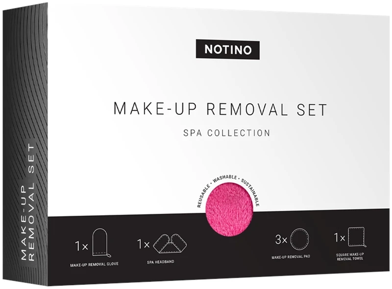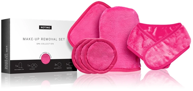 Le démaquillage est une étape essentielle du soin de votre peau que vous ne devriez jamais oublier. Transformez donc cette obligation quotidienne en un agréable rituel. Trois cotons cosmétiques lavables, des gants de démaquillage et une serviette en microfibres agissent comme un véritable aimant sur le maquillage et les impuretés de votre peau. Un bandeau très pratique permet aussi de parfaitement protéger vos cheveux pendant vos soins. L’ensemble Notino Spa Pink est exclusivement en micro-fibres et peut passer à 40 °C à la machine à laver.