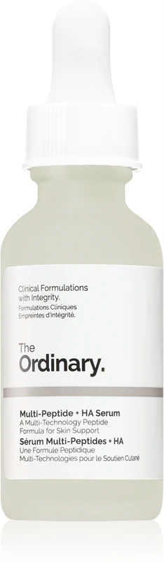 Le sĂ©rum peptidique anti-âge The Ordinary Multi-Peptide + HA Serum est un soin Ă base d’eau qui combat les signes de l’âge et la sĂ©cheresse cutanĂ©e. La formule combine quatre technologies peptidiques parfaitement conçues, des acides aminĂ©s respectueux de la peau et de multiples complexes d’acide hyaluronique pour rĂ©duire visiblement les pattes d’oie et amĂ©liorer la fermetĂ© et l’Ă©lasticitĂ© de la peau. Au bout de 8 semaines, la peau est plus douce et paraĂ®t plus jeune.