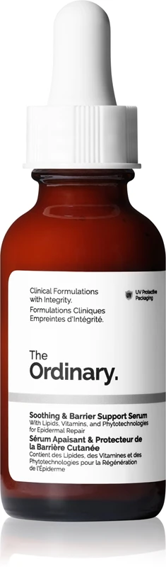 Vous avez souvent une peau irritée, rouge, qui tiraille et sèche ? Le sérum apaisant et protecteur de la barrière cutanée Soothing & Barrier Support Serum de The Ordinary est conçu pour apaiser efficacement la peau irritée en l’hydratant. 8 ingrédients et technologies clés viennent renforcer la barrière protectrice de la peau pour faire disparaître rapidement les sensations désagréables et inconfortables. Le sérum améliore également l’aspect général du visage grâce à ses effets lissants.