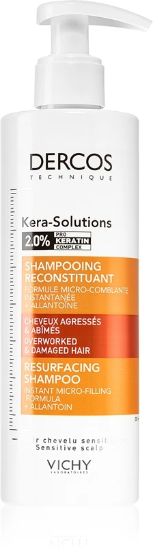 Les cheveux fréquemment exposés aux agressions mécaniques, thermiques et chimiques perdent progressivement leur kératine. Ils deviennent donc fragiles, ternes et rêches au toucher. Le shampoing réparateur pour cheveux secs et abîmés Vichy Dercos Kera-Solutions contient une formule micro-comblante spéciale avec un complexe Pro-Kératine qui répare les cheveux dès la première application. Ce shampoing protège également les cheveux contre les frisottis jusqu’à 48 heures, en plus de faciliter leur mise en place.